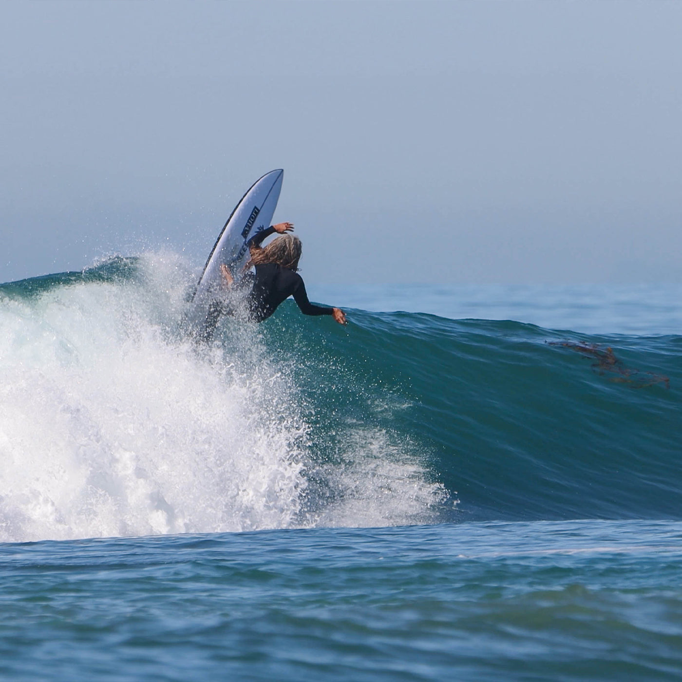 Rob started with his best-selling Machadocado, and stretched out the outline to its midlength form, which made it much straighter creating a really glidey and floaty shape that’s easy to ride. He pulled down the rail from the domed deck giving the shape plenty of performance, and double concave with see running down the middle, making the board really user-friendly and easy to ride. The wide squash is super thinly foiled, just like Rob’s Machadocado. This design is really responsive rail-to-rail, great for long drawn-out turns, but also whips really tight in the pocket and in tight places on the wave face.