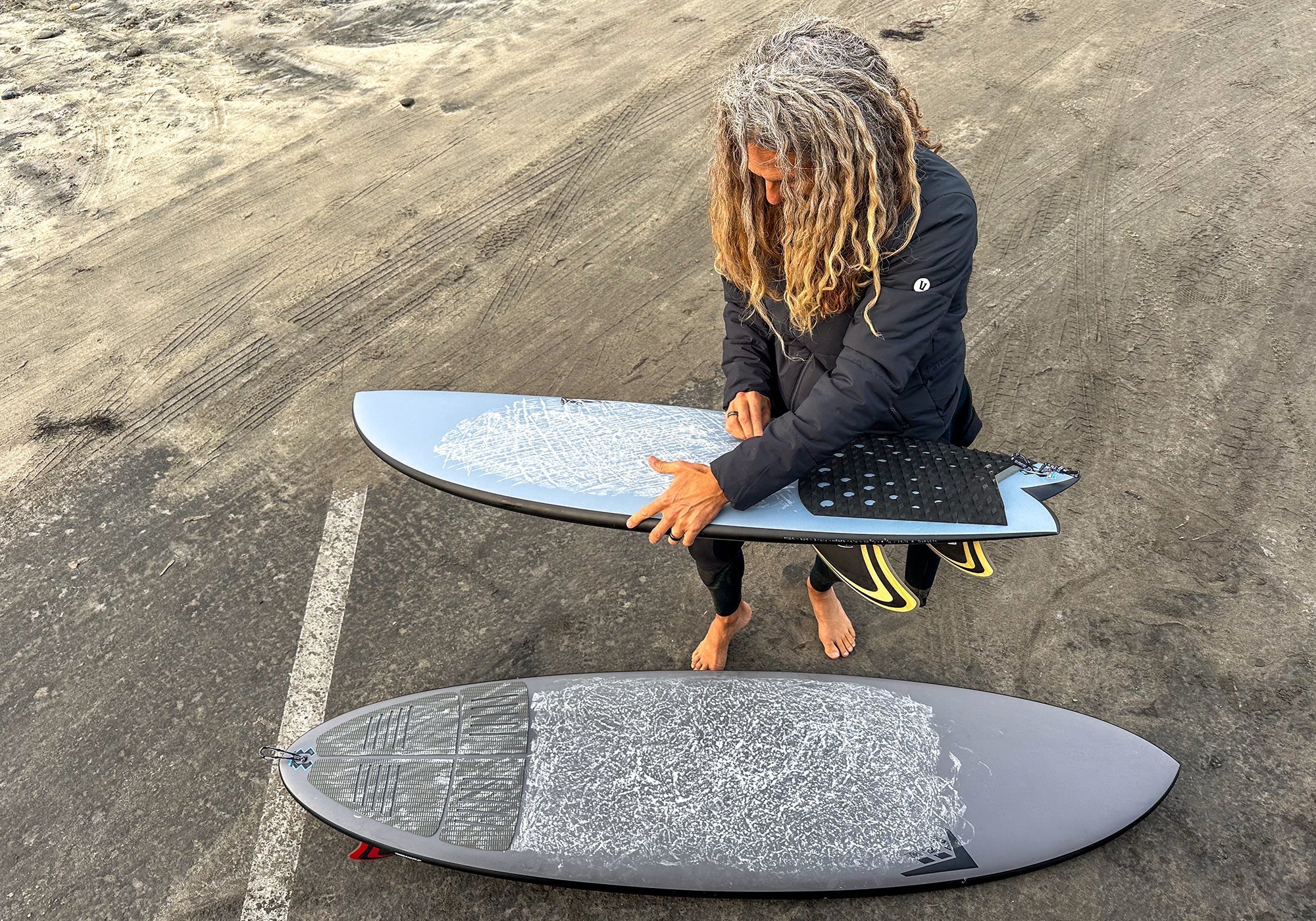 Our entire range is made with more sustainable materials than typical surfboards, but can be repaired with standard surfboard building supplies. We use bio-based epoxy resin and EPS-based foams.