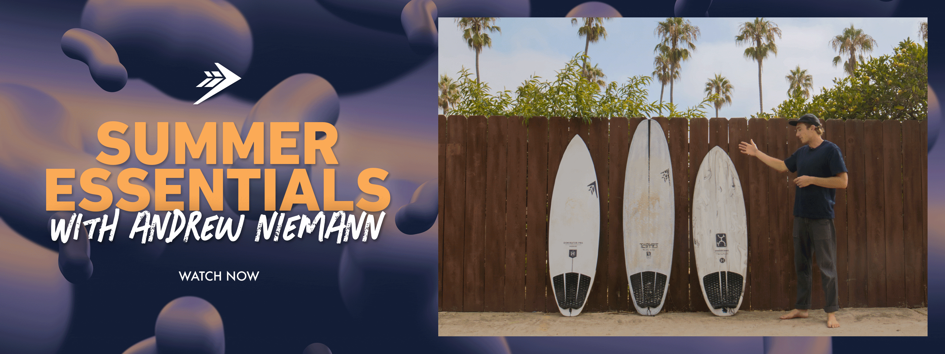 Watch Summer Essentials with Andrew Niemann, our last episode for this season now playing on our YouTube channel. Hear our Global Operations Manager break down his 5'6" Dominator Pro by Dan Mann, 5'2" Machadocado by Rob Machado, and 6'0" Revo Max by Daniel Thomson that he's been surfing at home in San Diego.