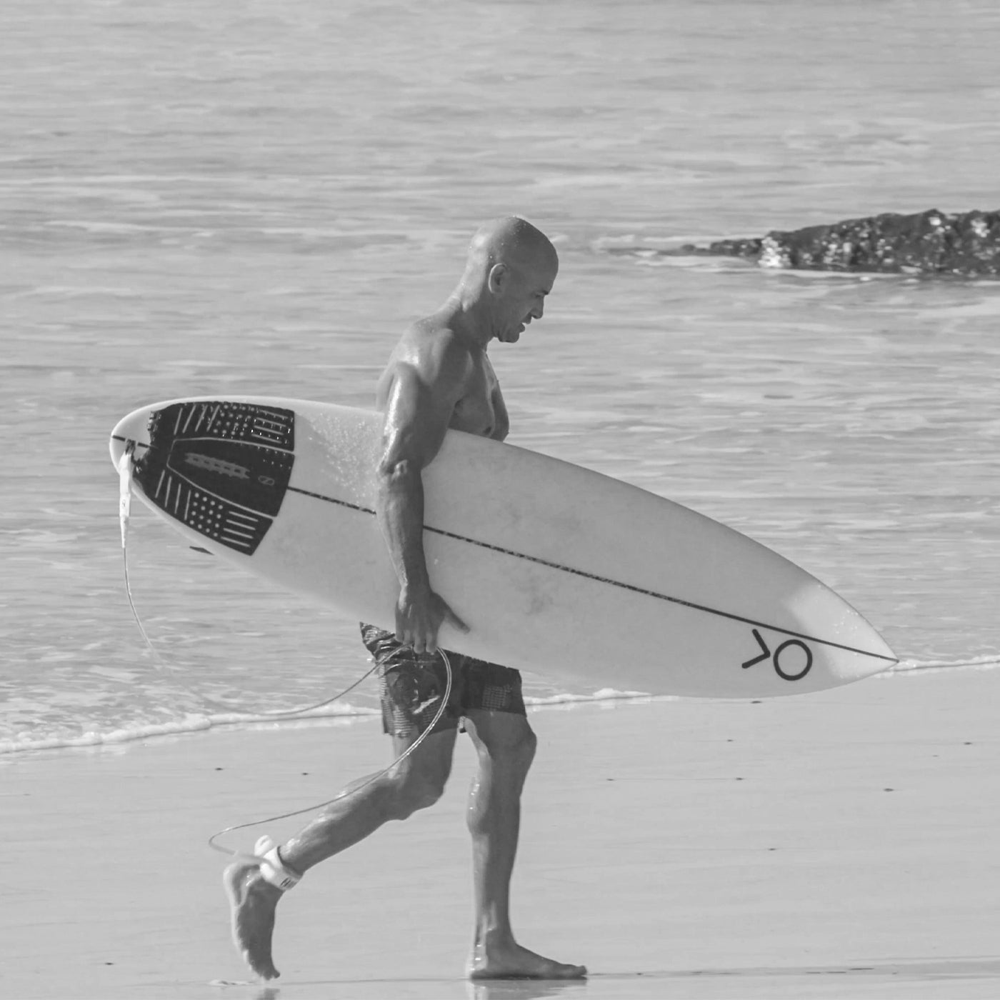 Kelly's FRK shapes went unchanged until 2022 for the Barra de la Cruz event when he wanted to change the rail and foil to be more balanced under his chest. And then once more before a trip to J-Bay in 2023, when he asked Dan to push the wide point forward making the back half of the board more narrow than the FRK, allowing for a more elliptical, pulled-in tail. More narrow meant more sensitivity, and more need to be on top of your game.