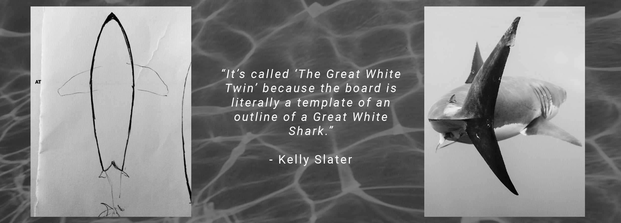 Inspired by the outline of a Great White Shark, this is Kelly Slater's newest performance twin model.