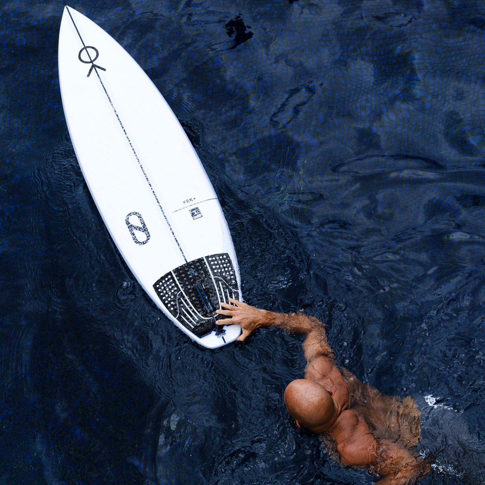 The Slater Designs 5 Piece Action Pad is Kelly’s favorite arch, with functional design from Kelly directly. He chopped a ‘ V ‘ into the tail kick to prevent your leash from catching and slit the arch. The arch support is just as wide as on our 3 and 5 piece Slater Designs pads but lower on this one. The square grooved edges on either side of the parallel slits give you a ‘hooked in’ feeling that other arch supports won’t, and the Action Pad also gives you options: a longer pad or a shorter pad, depending on how you chose to space the the side pieces from each other.