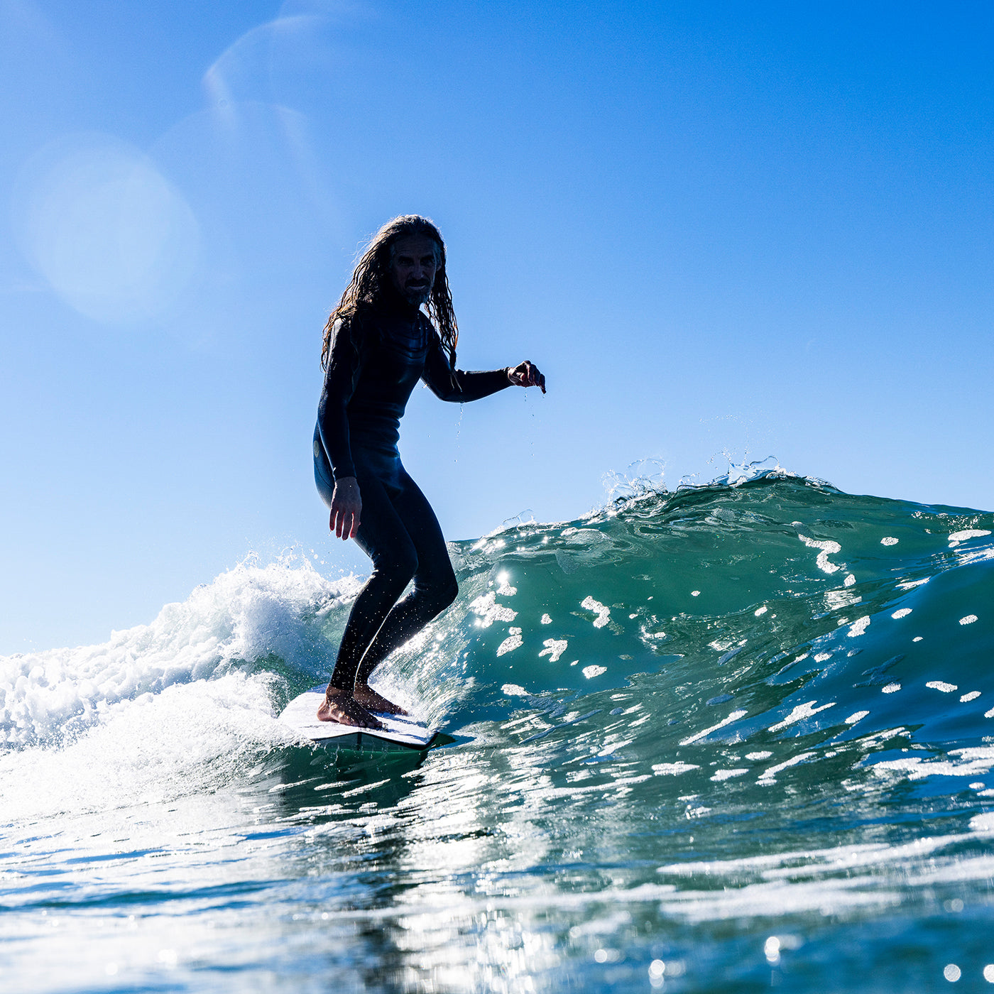 Rob started with his best-selling Machadocado, and stretched out the outline to its midlength form, which made it much straighter creating a really glidey and floaty shape that’s easy to ride. He pulled down the rail from the domed deck giving the shape plenty of performance, and double concave with see running down the middle, making the board really user-friendly and easy to ride. The wide squash is super thinly foiled, just like Rob’s Machadocado. This design is really responsive rail-to-rail, great for long drawn-out turns, but also whips really tight in the pocket and in tight places on the wave face.